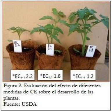 podremos detectar problemas de salinidad según el desarrollo de las plantas a diferentes valores de CE. (Figura 2).