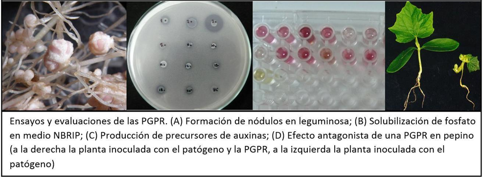 En lo que refiere a los efectos positivos (o benéficos) en la zona de la rizósfera, estos son llevados a cabo por un grupo de microorganismos conocidos por sus siglas en inglés PGPR (Plant Growth Promoting Rizobacteria) (Barka et al, 2009). Estos abarcan un conjunto de bacterias que inciden directamente sobre el desarrollo y protección de las plantas distinguiéndose dos subgrupos: PGPR y Biocontrol-PGPR (Kloepper, 1992; Bach y Díaz, 2010; Toro et al, 2013). Los mecanismos llevados a cabo por ellas son diversos y pueden dividirse en estimulación directa y estimulación indirecta: